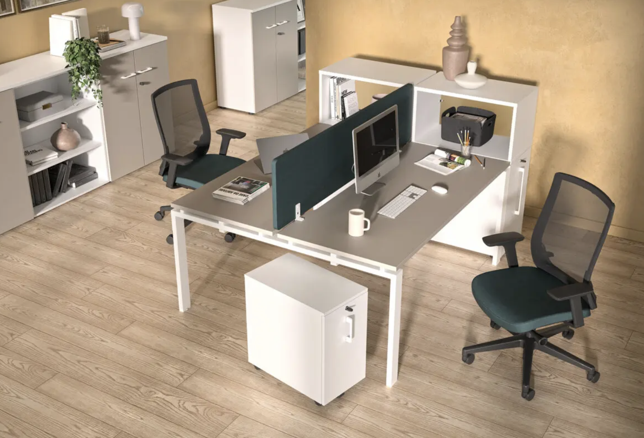 Les bureaux d’aménagement Astro au design sobre s’invitent à la création d’espaces collaboratifs sans aucun compromis sur la fonctionnalité. Sa structure métallique en arche, dissociée du plateau par une entretoise, s’affiche exemplaire en espace ouvert pour optimiser des agencements multiples de grande envergure. Astro est un mobilier évolutif pour répondre aux besoins de proximité et de communication, qui gagne en fonctionnalité par ses options de privatisation, d’accessoirisation et d’électrification.